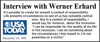 30岁的时候,当我获得了我想要的一切时,我才意识到,我对人生一无所知。我感恩教导了我的人,包括奥莱•拉森,罗伯特•梦露,杰克•施瓦茨,巴克明斯特•富勒,迈克尔•墨菲,和爱海德。我是在爱海德培训公司做志愿者的时侯,学习到做人为人的。“